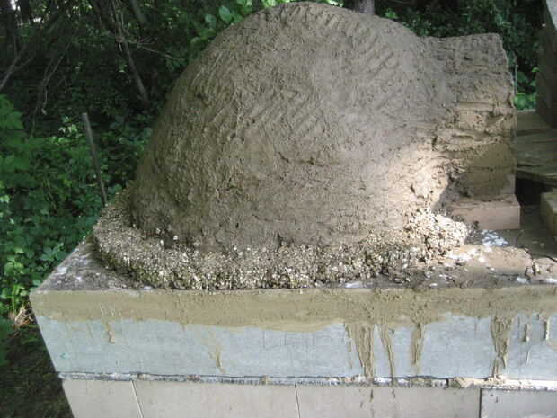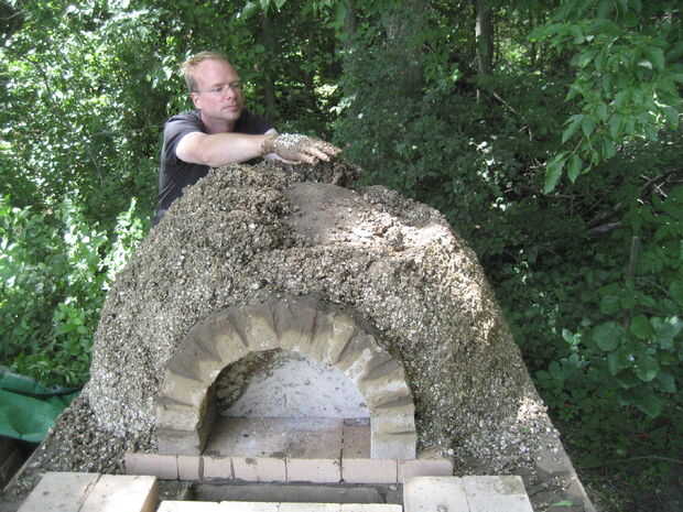 Tener virutas de madera no más, hizo la siguiente capa de aislamiento de lodo mezclado con vermiculita. Tenía exactamente la textura de las bolas de palomitas de maíz.