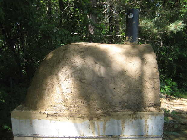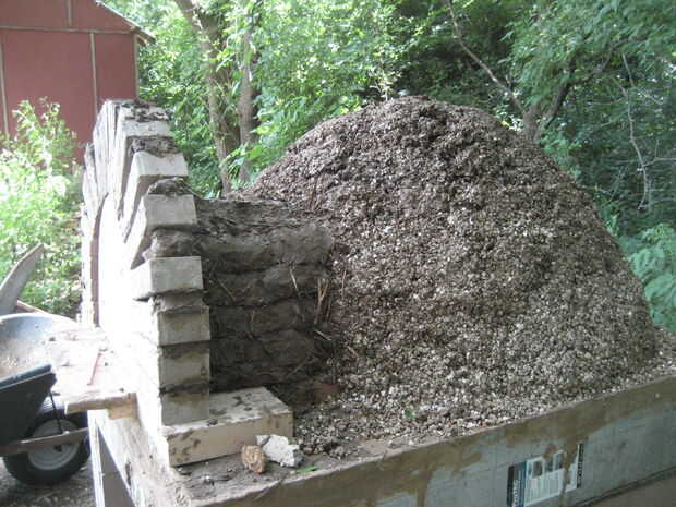 Luego cubrí el horno entero con mezcla de barro de paja, para la protección y la forma final.