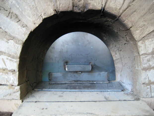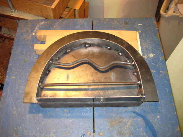 Chris tomó el arco dibujos, alisado y les agrandado y tenían corte de acero de grueso calibre. Agregó bridas y manijas, y I aislamiento en el interior de la puerta con escayola mezclada con vermiculita.