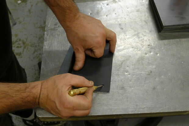 Usando una plantilla y punzón, marque todos los puntos a perforar.