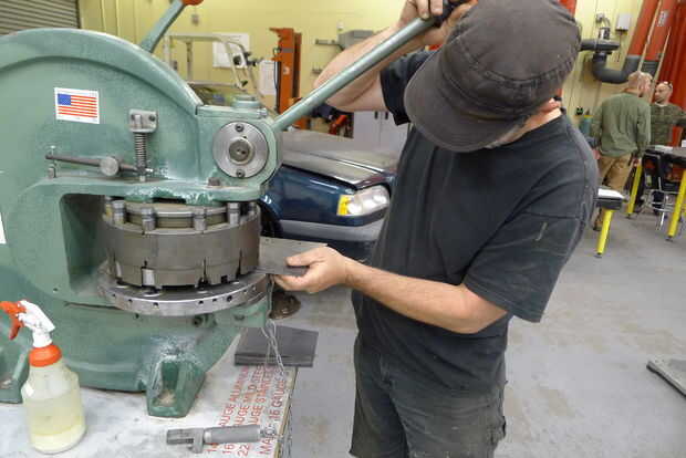 Perfore marcando puntos con un sacador de la torrecilla.