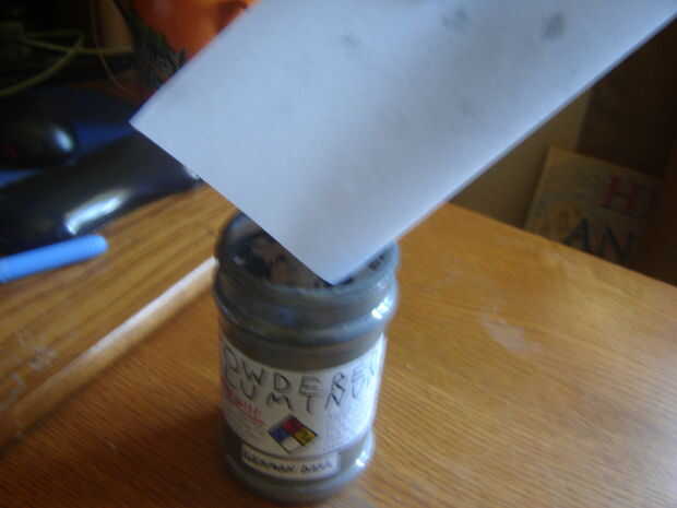 Obtener vidrio o tarro de plástico lo suficientemente grande como para sostener el polvo. Sugiero que poner una etiqueta detallada en él como lo hice con la mía. Coge el papel por sus dos extremos y llevarlos juntos. Luego vierta con cuidado el polvo en la jarra. No hacer una nube de polvo enorme, ya que son desagradables que persistente.