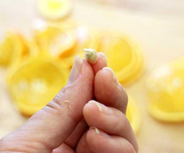 Quitar las semillas grandes y desechar el corte final offs.
