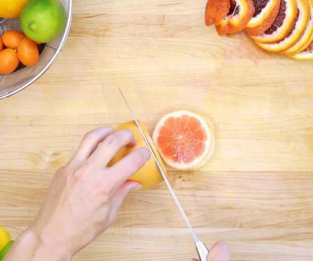 Si está utilizando un cuchillo como lo hice, corte un trozo pequeño del lado de cada fruta, para que pueda sentarse en la mesa, ofreciendo más estabilidad al corte. Y por favor, asegúrese de utilizar las técnicas de corte adecuadas. (Describo esto en el paso 2 de mi 'a picar una cebolla' instructable.)