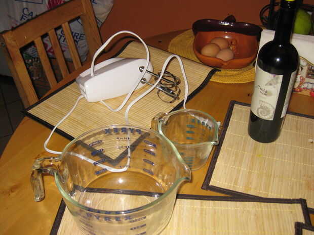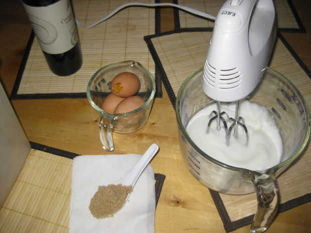 En cuanto a las mediciones, es bastante simple. 3 claras de huevo maltratadas puede servir hasta 3 personas. Para 5 personas necesitas 5 claras de huevo. Todo lo demás (vino, azúcar morena) depende de gusto.