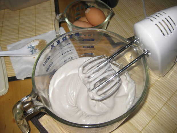 -La mezcla con una batidora o un tenedor hasta que las claras de huevo se han elevado a una espuma espesa.