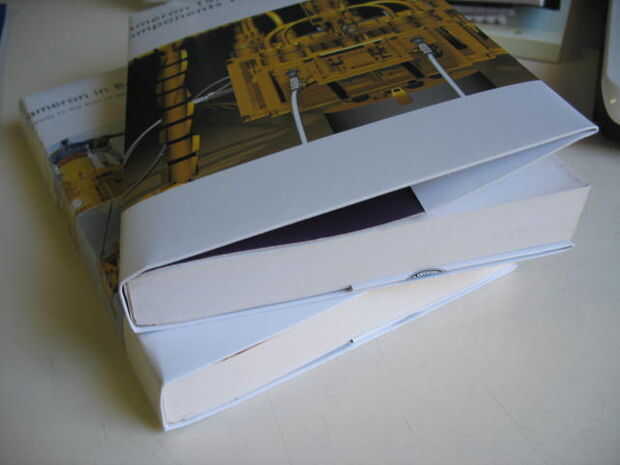 Cada pliegue debe ser un poco (+ 1 mm) mayor que las dimensiones del libro sí mismo en orden para el libro caber bien. Si tienes problemas para deslizar las tapas del libro en la tapa del libro, despliegue del bookcover y doblar las aletas, permitiendo un poco más espacio.