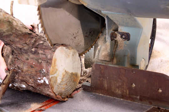 Con cuidado, y repetir, con cuidado de mantener la extremidad debajo de la hoja de sierra y cortar rodajas de aproximadamente 1/2 pulgada de espesor. Cinco o seis posavasos hacen un buen conjunto.