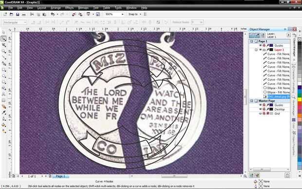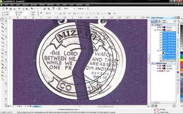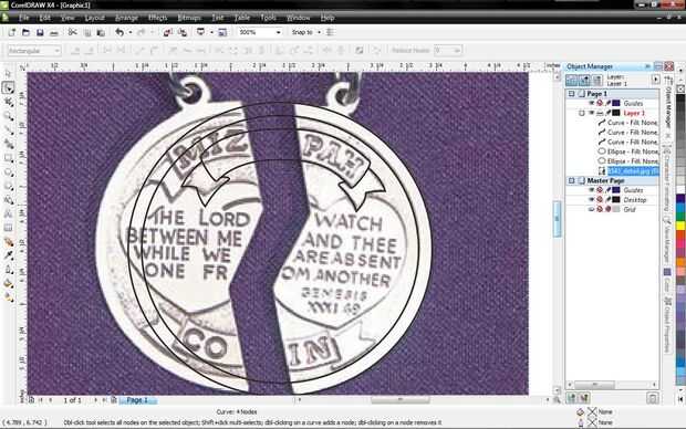 Añadir nodos en los solapes en los anillos de conector y el exterior de la moneda y como lo para el corazón sólo hacer tanto de los círculos. Ahora seleccione las curvas de los dos anillos de conector y el exterior de la moneda y subir en el menú desplegable organizar. Seleccione combinar y ahora son una curva.