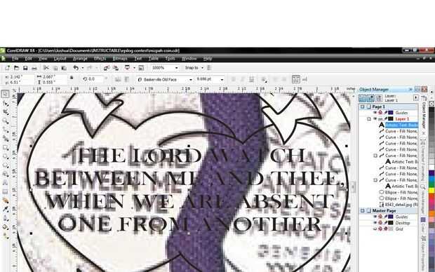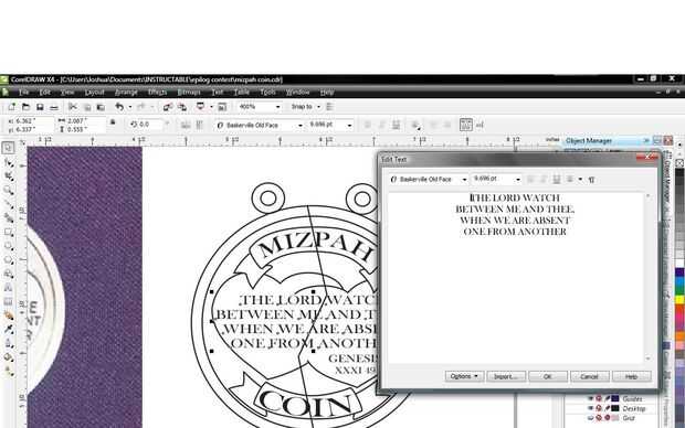 En la barra de herramientas a la izquierda de la pantalla haga clic en la A grande, esta es la herramienta de texto. Haga clic en la cinta superior y tipo Mizpa. Ahora ir a la parte superior de la pantalla para el menú de texto desplegable y haga clic en texto apto para ruta. Ahora puede alinear el texto en la cinta pero usted va a encontrar difícil conseguir perfecto, no te preocupes apenas consigue cerca de.