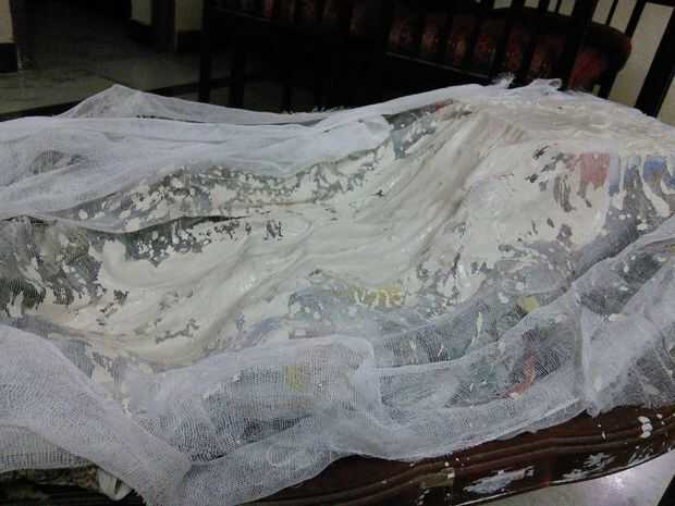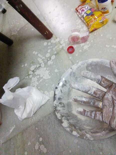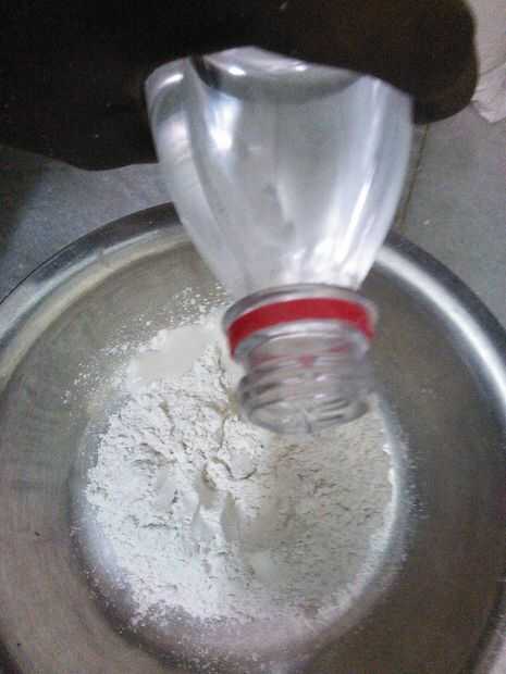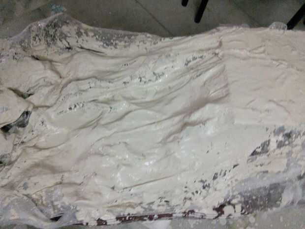 En este caso no necesitamos pasta espesa, hacer un material acuoso y comienza a cubrir el yeso que ya mantuvimos. Hacer esta mezcla durante 15 minutos.