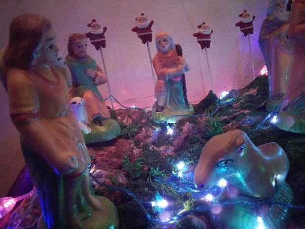 Añadir Reyes, pastores y decoraciones de Navidad, estrellas y árboles.