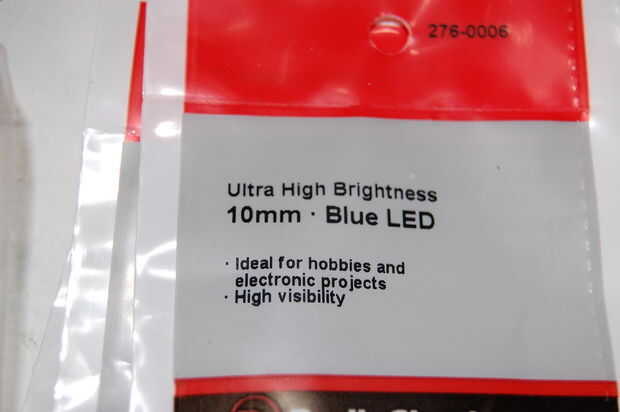 ($3) 10mm azul led (4500mcd o así pues, en realidad compré tres pero las complicaciones me dejaron con una)