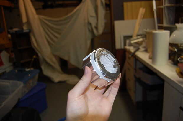 2. Coloque el extremo pequeño de pvc tapa abajo y traza el exterior e interior para hacer un anillo de plata. recorte y aplique el anillo.
