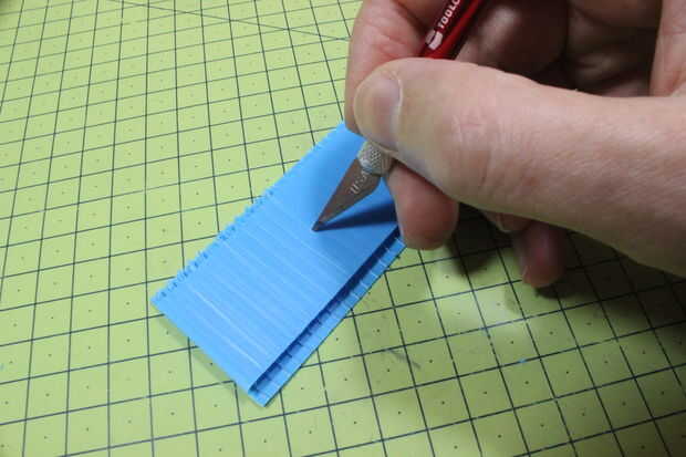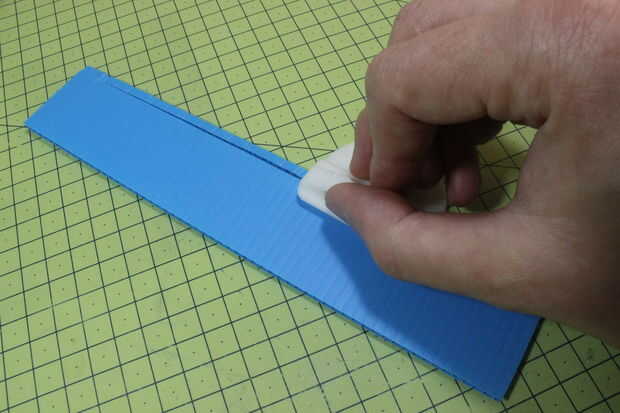 2. Inicio como antes quitando un 'filete' de una tira de Correx (Asegúrese de tener en cuenta la dirección de la estría - perpendicular al corte del borde).