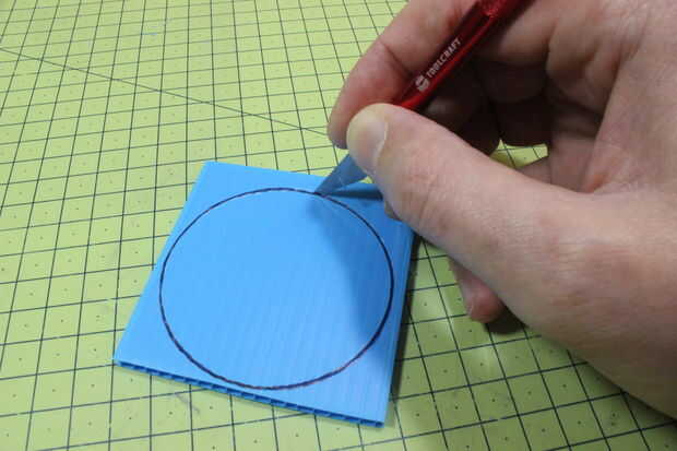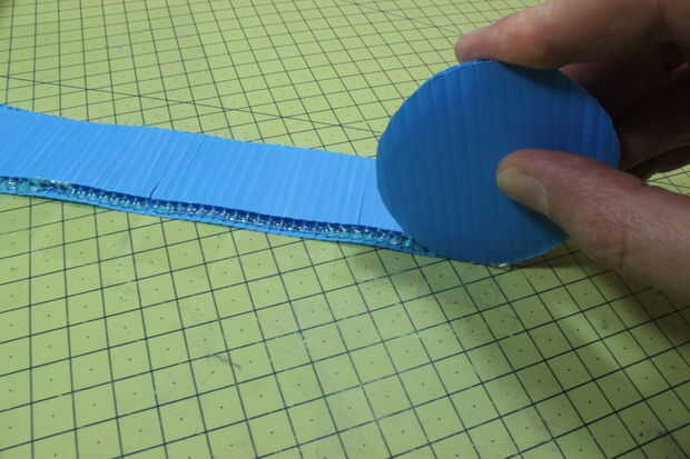 7. cortar un círculo. Consejo: Rodarla en el borde de la tira a ver si se va todo el camino alrededor. Recorte el exceso.