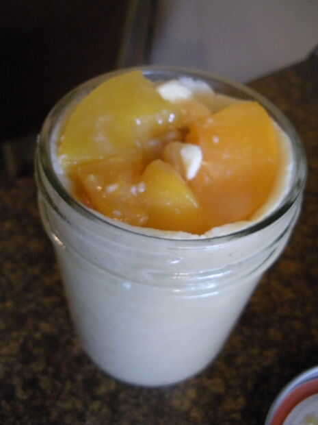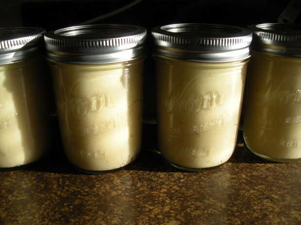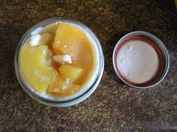 Para este paso, usted necesita dividir la corteza de pastelería (que será suficiente para 4 frascos de tamaño 1 cuarto). PLOP una bola de masa de la corteza en cada frasco y trabajar hacia los lados, no es necesario recubrir el interior de los tarros con cualquier cosa, el pie se deslizará justo después de ser cocinados. Asegúrese de trabajar la corteza hasta las paredes internas del vaso para dejar suficiente espacio para el relleno. Después de poner en la corteza, llenar cada frasco con aproximadamente 1/2 taza de relleno.