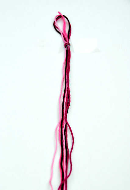 Corte 4 cuerdas, aprox. 50" cada. Doble a la mitad del montón y anude un lazo en la parte superior.