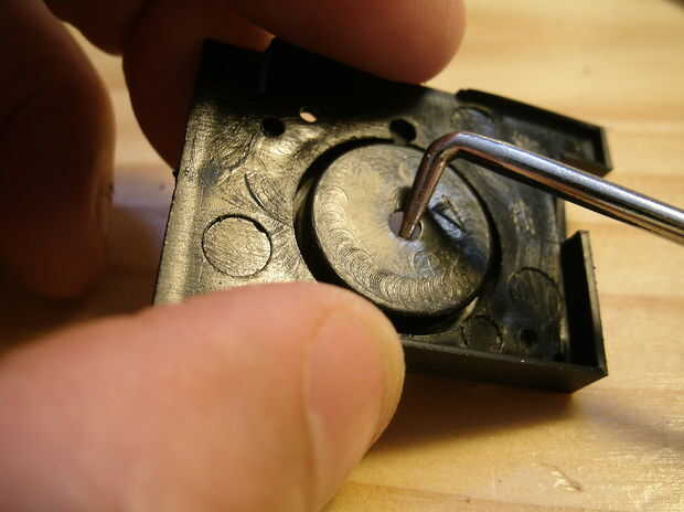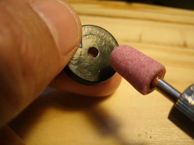 5. Tome el disco de plástico de la abertura y moler hacia fuera del centro hasta que quede sólo un círculo delgado.
