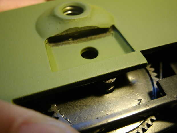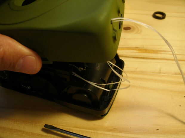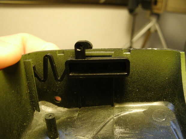 2. Vuelva a instalar el mecanismo de cierre de pestillo y elementos ópticos al visor en la placa frontal y enrosque la bombilla y exposición múltiple los orificios creados para ellos (frontal y lateral). También volver a instalar la puerta trasera antes de colocar la placa frontal.