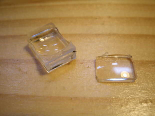 9. por último usar un par de pinzas envueltas en paño para sacar las dos lentes que componen el visor. Si no piensa en la pintura de la cámara, puede deja en.