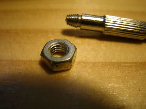 5. Si usted perforar demasiado grande de un agujero o el hilo procedimiento de corte no funcionaba por alguna razón, usted puede pegar una tuerca con la rosca correcta a la parte superior o inferior del agujero utilizando la misma técnica que en el último paso.