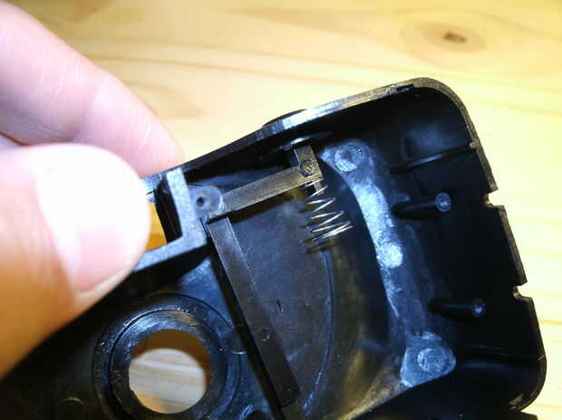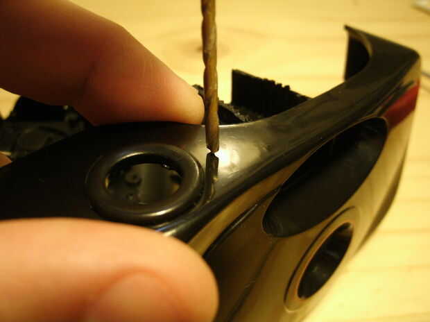1. examinar la ubicación del disparador y hacer una suposición donde un agujero en la parte superior enganchará el obturador. No tiene que ser exacta, como ver, pero intentar llegarlo más cerca posible.