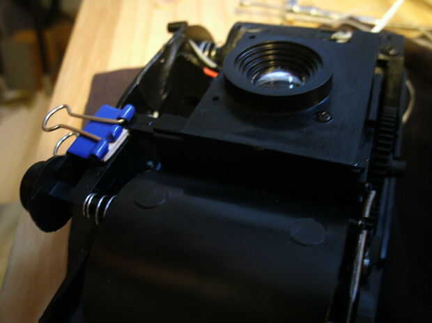 4. Ajuste la cámara juntos de nuevo y probar la versión de cable seco. Si el émbolo no activa el disparador, pegue un pedazo de madera o plástico en el brazo de la persiana para que el émbolo puede comprometer un objetivo más grueso.