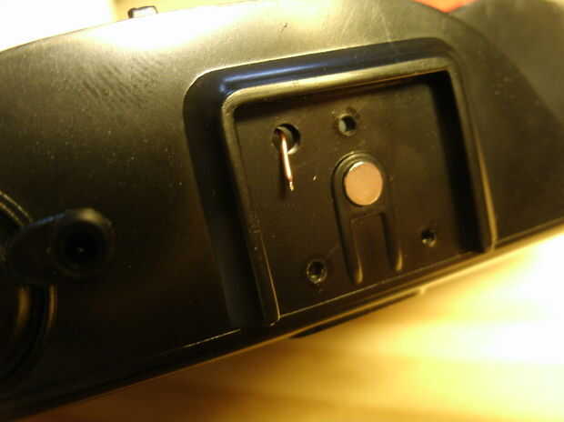Originalmente pensé que la zapata tenía algunos problemas de colocación de electrodos, pero abrí la cámara, me di cuenta de que los cables internos no fueron instalados en la cámara. Una huelga contra el control chino de calidad! Pues bien, en el lado bueno, toda la infraestructura estaba allí a aparejo del jurado el mecanismo flash. El concepto es simplemente provocar un cortocircuito entre los dos electrodos del flash cuando el obturador está abierto. Hay un montón de instrucciones, pero es más fácil que hacer que to describir!