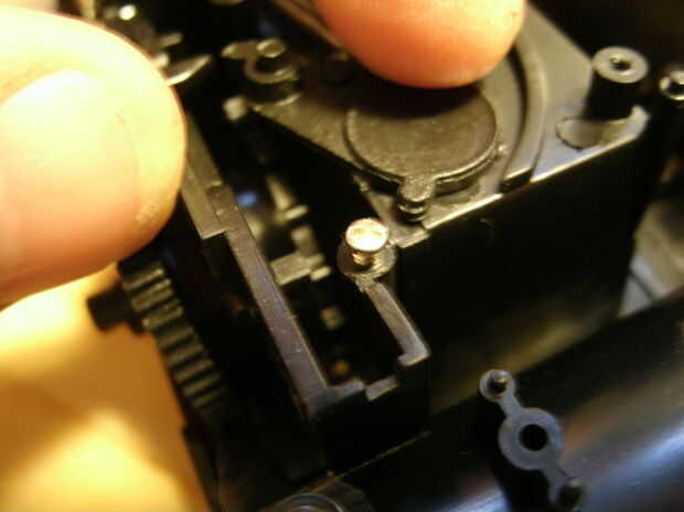 9. Vuelva a colocar el disparador y lensboard (no apretar demasiado el tornillo ya que unirá a la paleta de la lente).