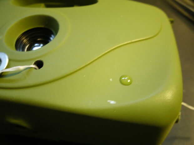 3. tomar el lente y perfore un pequeño agujero en la parte inferior derecha. Introducir el hilo en el orificio y conecte la Junta lente a la cámara.