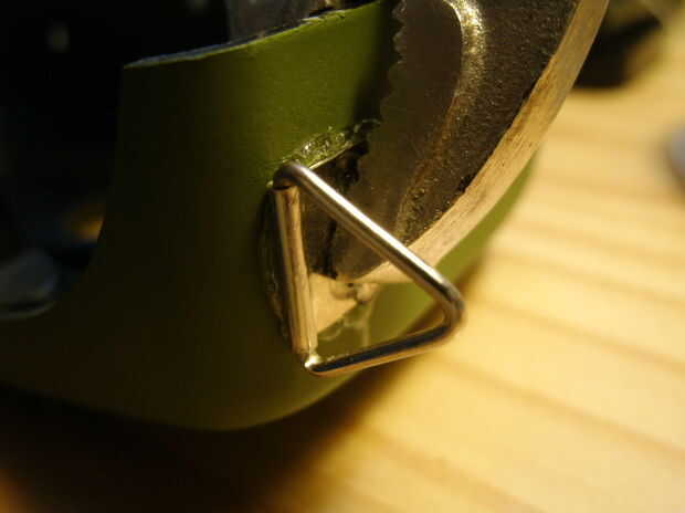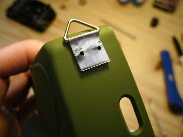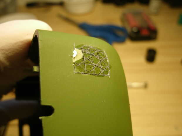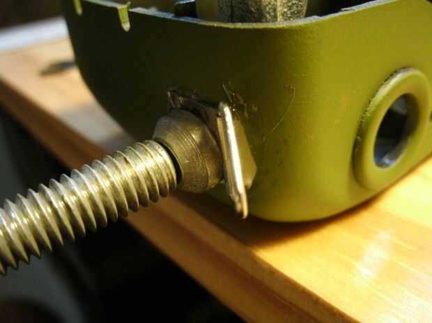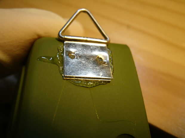 7. para mayor seguridad, haga agujeros en la placa frontal para tornillos pequeños (no mostrado). Añadir una pequeña cantidad de epoxi y enroscar los tornillos en los agujeros. (es permanente)