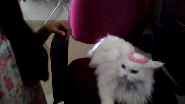 normalmente pongo una pulsera en su cabeza y un pequeño collar en su cuello y WOW! tu gato estará buscando X adorable)