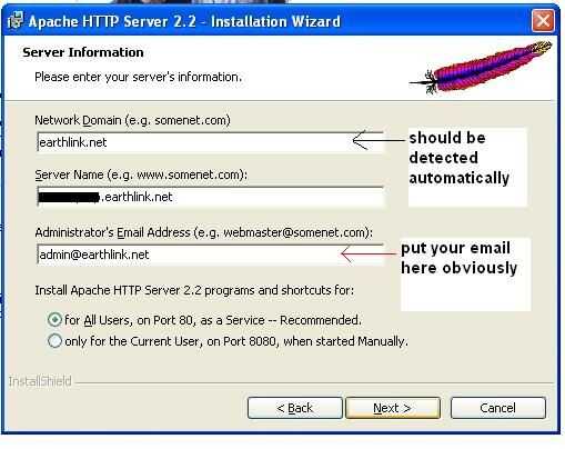 Debe llenar automáticamente en algunos cuadros de formulario con el nombre del servidor DNS (en mi caso fue earthlink.net) durante la instalación.