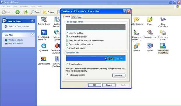Inicio--> Panel de Control--> barra de tareas y menú Inicio--> seleccionar "ocultar automáticamente la barra de tareas"