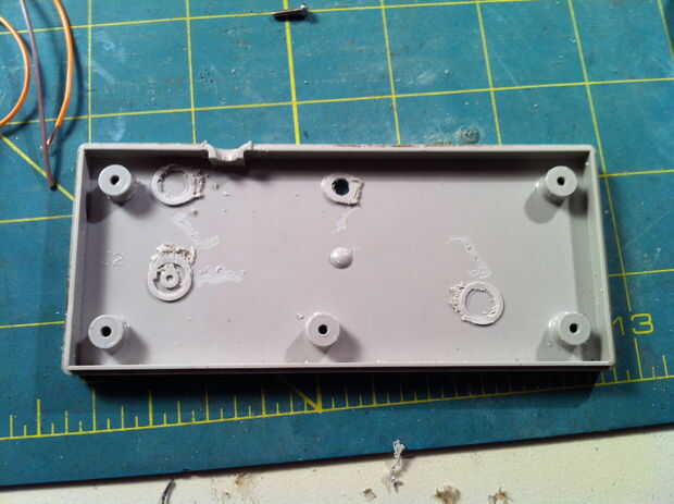 Desmontar el regulador NES quitando los seis tornillos en la parte posterior. Retire todas las piezas y ponerlas a un lado por ahora. Tuve que cortar algunas secciones en el controlador de la vivienda para permitir que todas las piezas para encajar (ver imágenes). El PCB de los controladores NES tenía porción grande sin los botones con una dremel para proporcionar la mayor parte del espacio para el controlador de teclado.