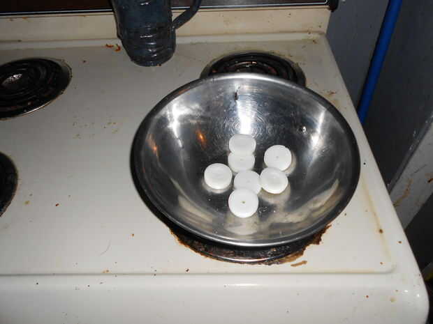 Se trata de un divertido paso :) en este paso vamos a hervir la cera! Pero antes de que derrita la cera deberás quitar la hoja de metal y la mecha de las velas del tealight entonces encienda la estufa (más bajo ajuste funciona muy bien) y coloque una taza de metal o la olla en la hornilla recomiendo apenas derritiendo unos 4 por ahora (derritió 7 y fue demasiado).  Les se funden hasta que la masa se reduce a un líquido. Luego pasar :)
