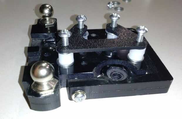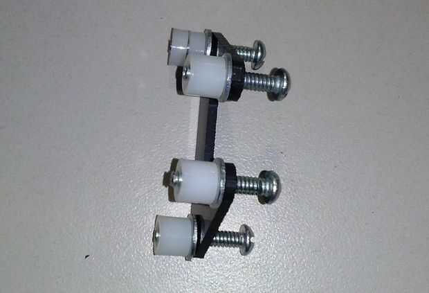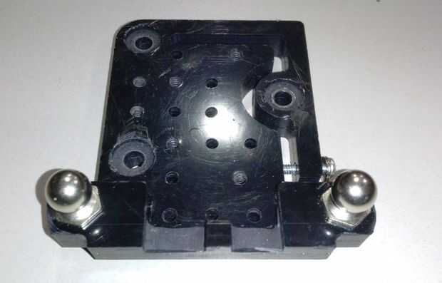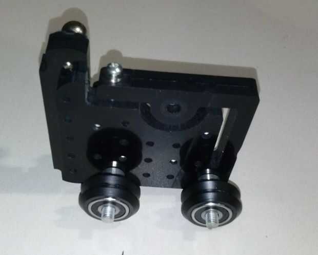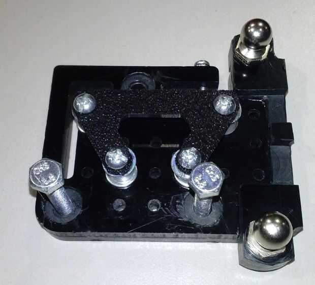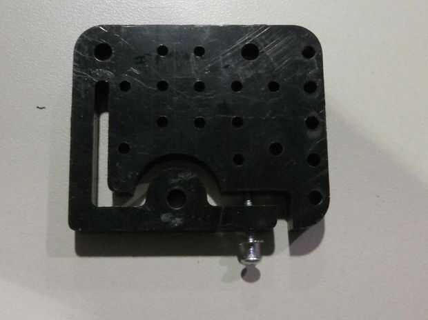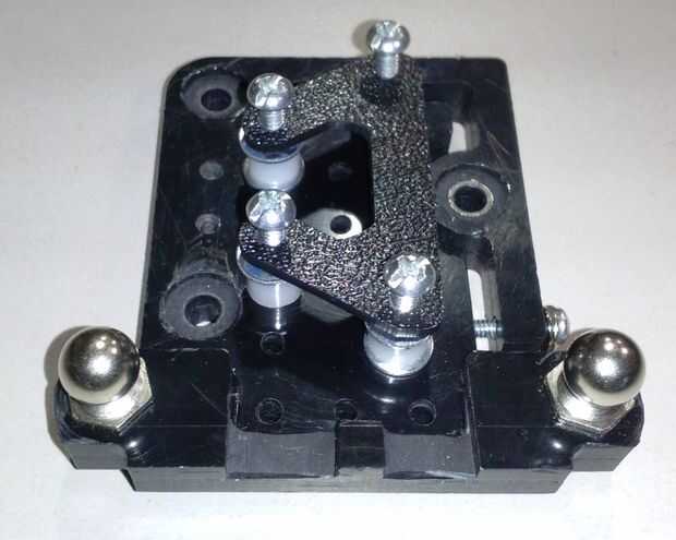 Haz un un 1,5" x tornillo #4-40, coloque una arandela en pase el tornillo a través del orificio de 3/16 en el brazo y enrosque en el cuerpo del carro. No apriete el tornillo.