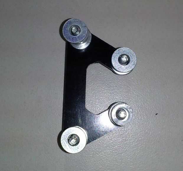 Tomar la placa del carro y taladre un orificio 5/32" 1/4" del extremo del brazo donde se monta la tercera rueda. Sólo el brazo del taladro. Vea la foto.