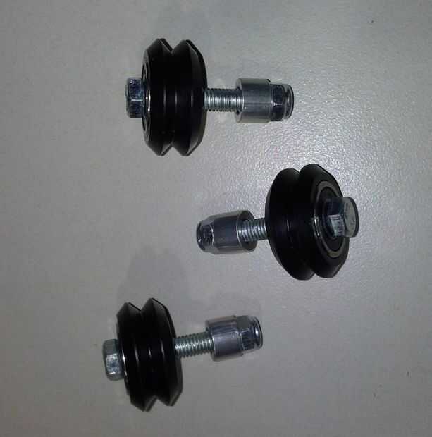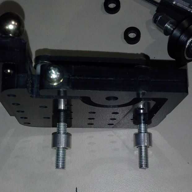 Fije las ruedas 1 y 2 (no la rueda 3 en el brazo) con un M5 x 40mm tornillo y espaciador suministrado que vinieron con las ruedas. Asegure con una tuerca de seguridad.