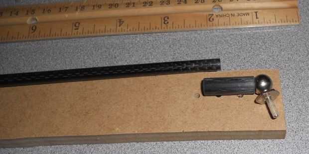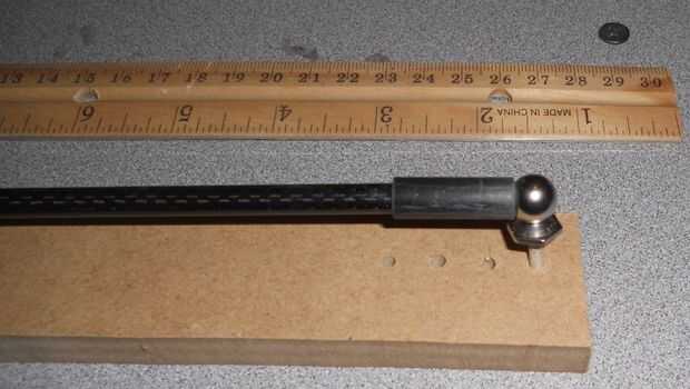 Tomar uno de los extremos magnéticos (Copa conjunto de bola) y pegarlo a la rótula. Poner una gota de pegamento del gorila dentro del tubo enfrente de la bola común. Inserte un extremo del tubo de fibra de carbono de 249mm en el extremo magnético. Tomar la otra bola conjunta y pegar otro extremo magnético. Añadir una gota de pegamento dentro del tubo enfrente de la rótula. Inserte el otro extremo del tubo 249mm en él. La rótula suelta del palillo en el agujero de gran tamaño. Ajustar todo el conjunto para que la barra es perfectamente recta y aproximadamente cantidades iguales del tubo más delgado dentro del tubo más grande pegado a las articulaciones de bola. Deje que el cura de pegamento 1-2 horas. Repita los cinco (5) veces más.