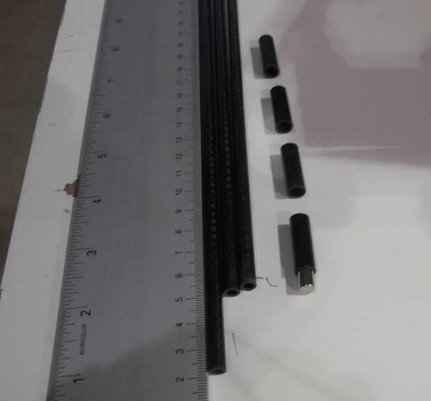 Tomar los tubos de fibra de carbono con 6 mm dentro de diameter(ID) y cortar en 12 partes iguales 1" de largo.