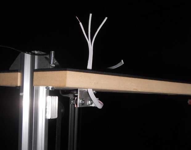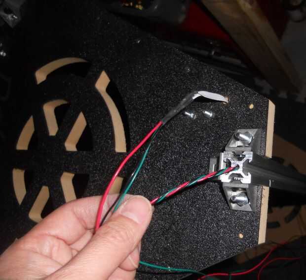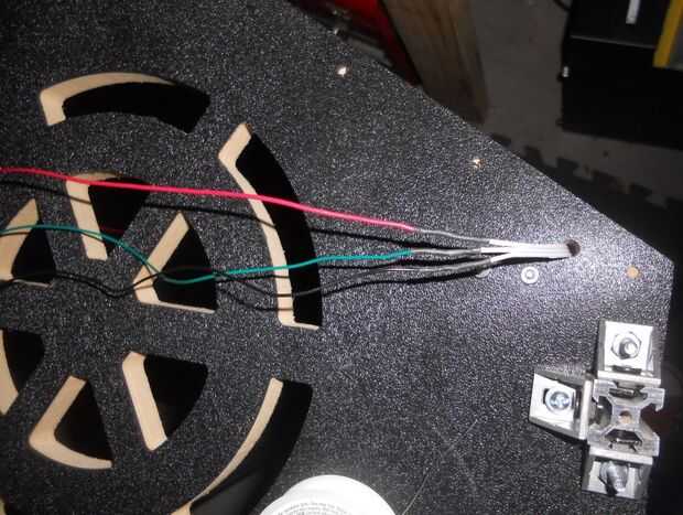 Para los sensores de tope final, corté el cable que vino con él y soldado rojo, negro y verde 22 cables para una identificación más fácil. Envían los cables a través del centro del carril para que estén fuera del camino. Donde los cables se encuentran con un borde de aluminio apliqué tubería para mayor protección del encogimiento.