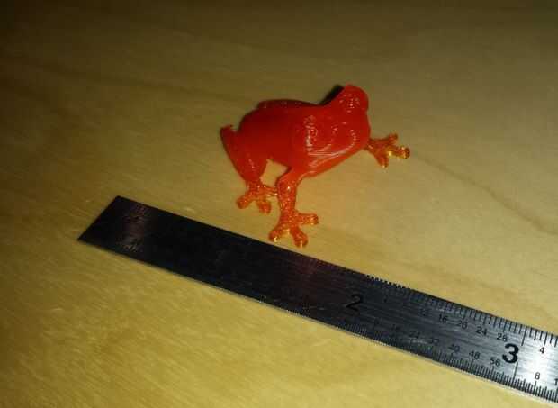 En la foto es una "rana" imprimí en la DeltaBot. Modelo por Morena Protti descargado Thingiverse. Fue lo segundo que lo imprimí. La primera es la "pirámide de enrejado" por MINIFACTURE. La rana fue impreso en tamaño real de 75%. perdí un poco de detalle debido a la reducción. Impresión era 17 minutos y algunos segundos.