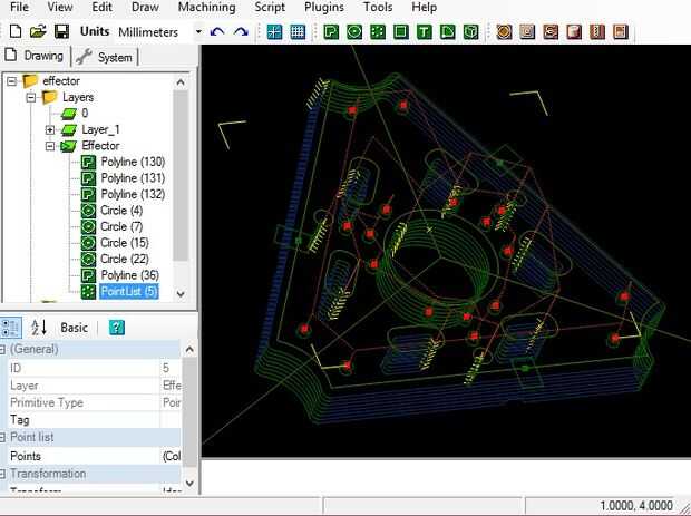 El efector final debe ser luz, por lo que inicialmente diseñada y había hecha de plástico ABS. Efectores finales son piezas normalmente impresas ya que la parte no estén mecánicamente presionada. Otra vez, ya que no tengo una impresora 3D, esto será mecanizado en CNC.