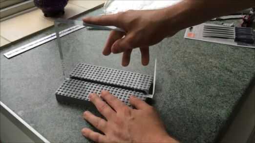 El A5 de la hoja de acrílico (plexiglás) he comprado de ebay. 2cms de espesor así que encontré una tapa de la caja de Lego para la base. Utilicé este porque su hueco por debajo y fácil de cortar con un cuchillo. Yo picado una tira fuera del centro por lo que era suficientemente densa para mantener el acrílico. También mad rebordes a cada lado para que el acrílico se ranura en.