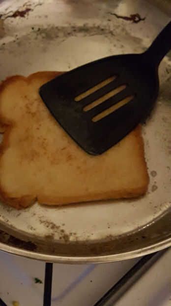 producto terminado!Paso 1: Se reúnen 2 rebanadas de pan, 2 rebanadas de queso, mantequilla, cuchillo, sartén, espátulaPaso 2: Poner pan en la estufa.Paso 3: Encender la hornilla, a fuego medio.Paso 4: Tomar 2 rebanadas de pan, ponerlo en la placa de