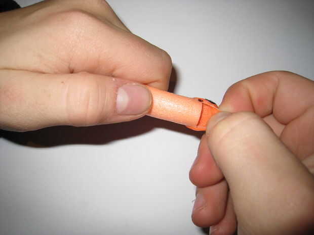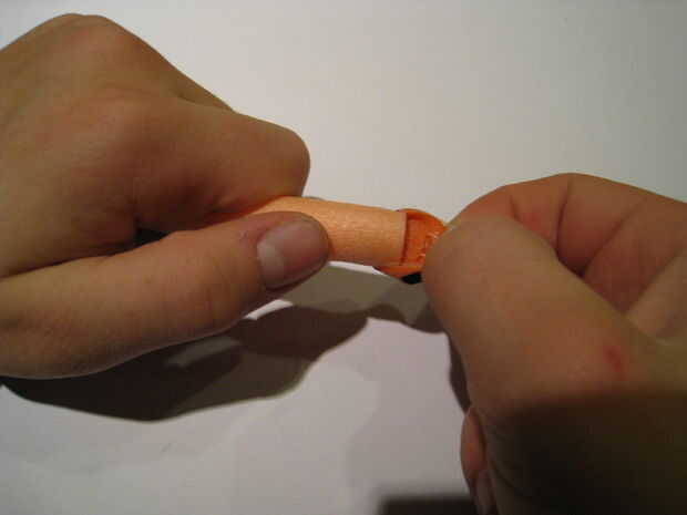Nota: Si la punta comienza a despegarse sin el tapón de goma, esto es bueno y le ahorrará un paso. Trate de mantener la parte enchufe pegada.
