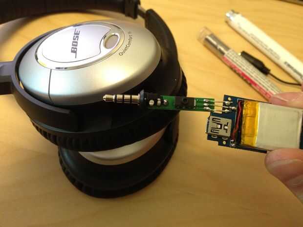 El primer paso es desoldar los cables desde el dongle de bluetooth y conector de 3,5 mm. Aplicar el soldador a uno de los empalmes de la soldadura y tire suavemente del cable. Vendrá libremente cuando la soldadura se derrita.