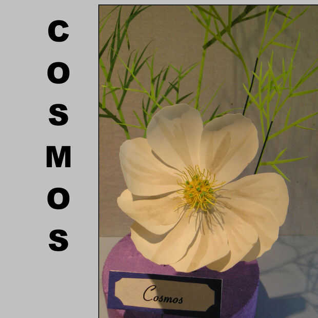 Tenga en cuenta qué flor es montada sobre una base de espuma de poliestireno. Espuma de poliestireno se corta a la forma con alambre caliente y luego se pega a una base de azulejos.  El peso de la teja estabiliza el display cuando se inserta el alambre floral en el pedazo de bae.